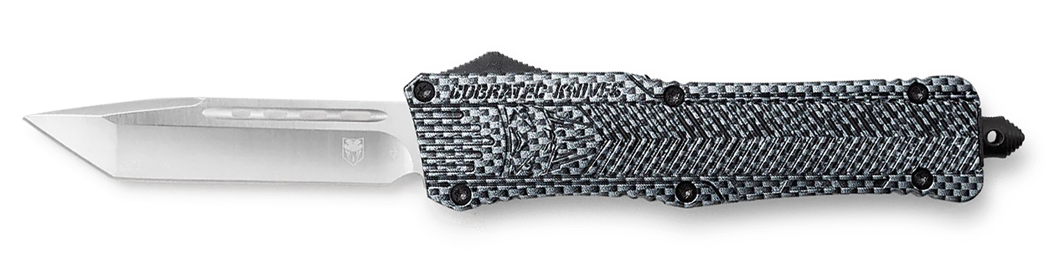 CobraTec Knives LCFCTK1LTNS CTK-1 Large 3.75″ OTF Tanto Plain D2 Steel Blade/Carbon Fiber Aluminum Handle Features Glass Breaker Includes Pocket Clip