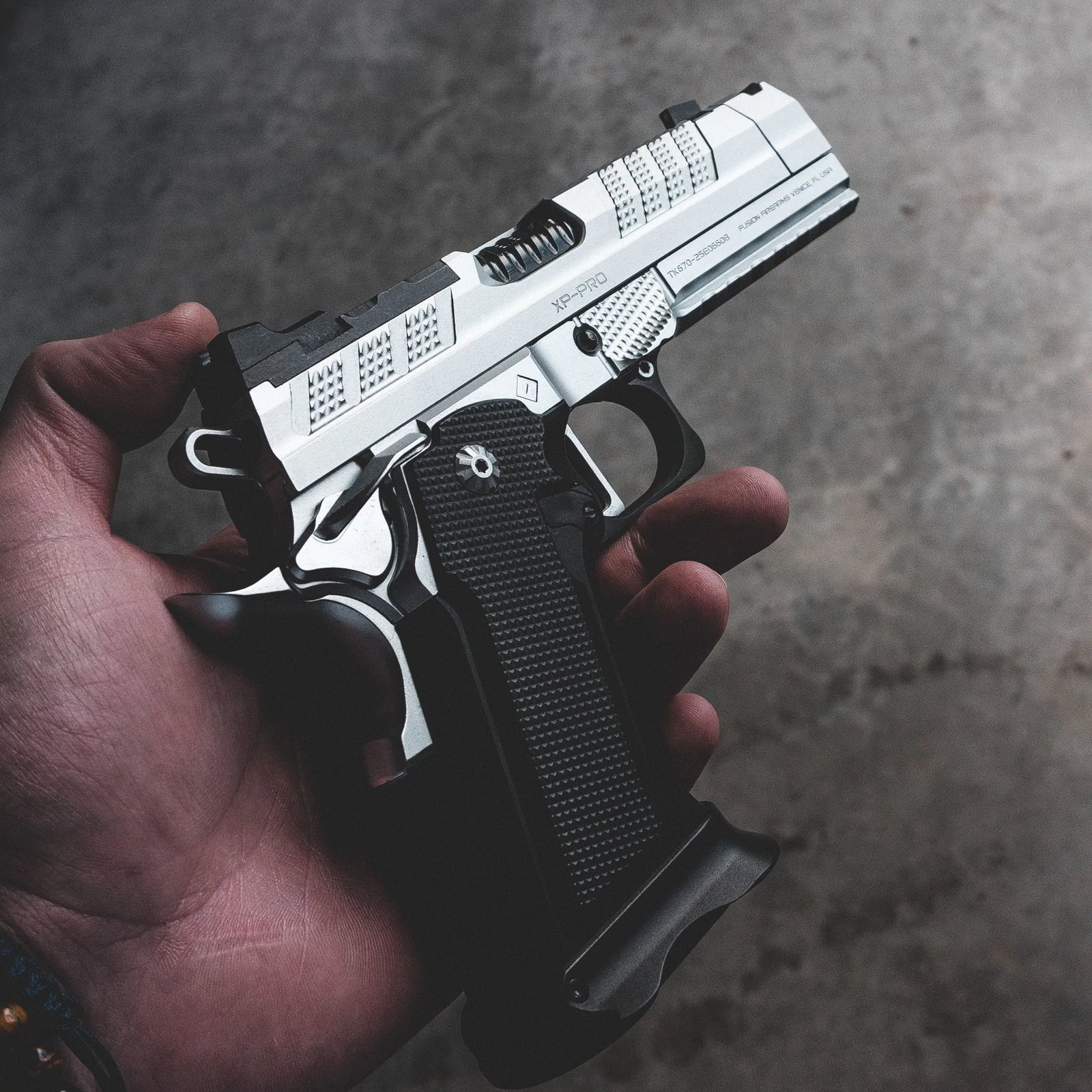 Fusion Firearms XP COMP & Ported Pistol – Chrome – Ambi Thumbrest (Custom Shop Edition) Single Shot 25acp, 9″