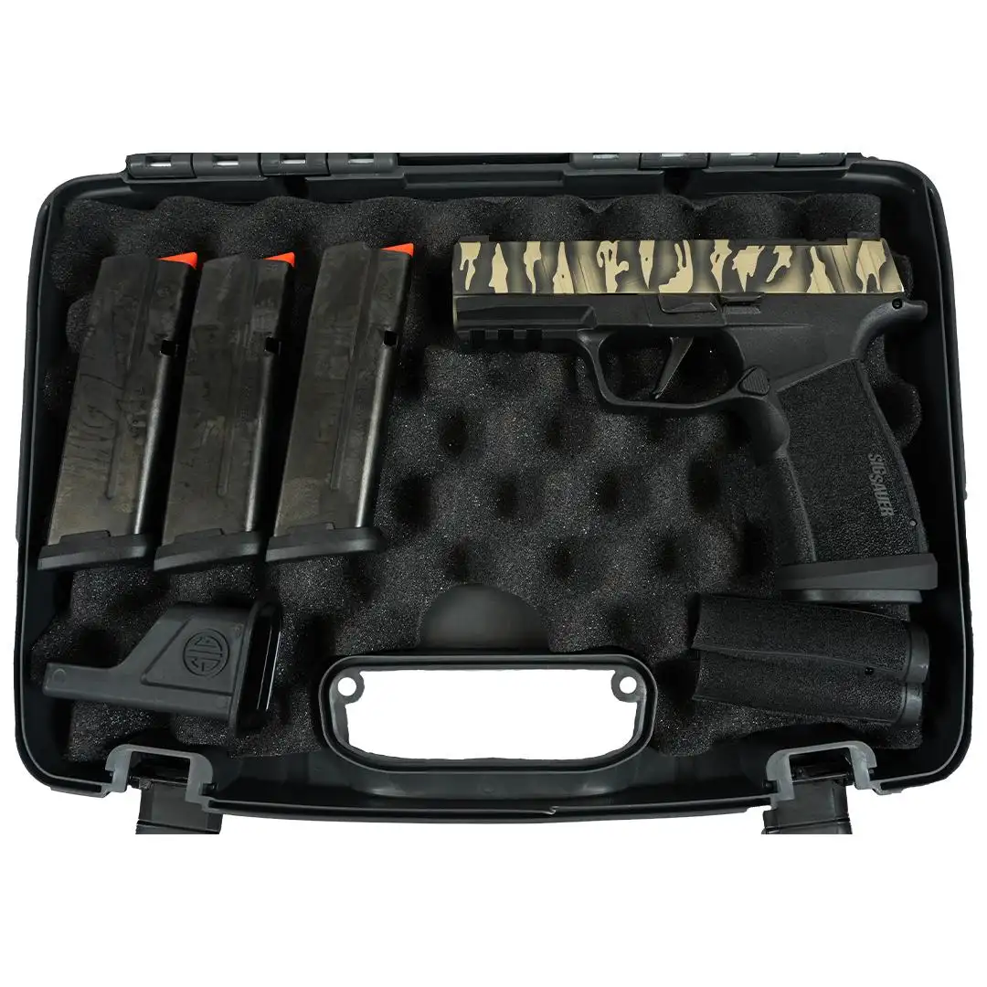 SIG P365 XMACRO TACOPS 9MM 3.7″ Brl – (4) 17rd Steel Mags-Tiger Stripe Slid
