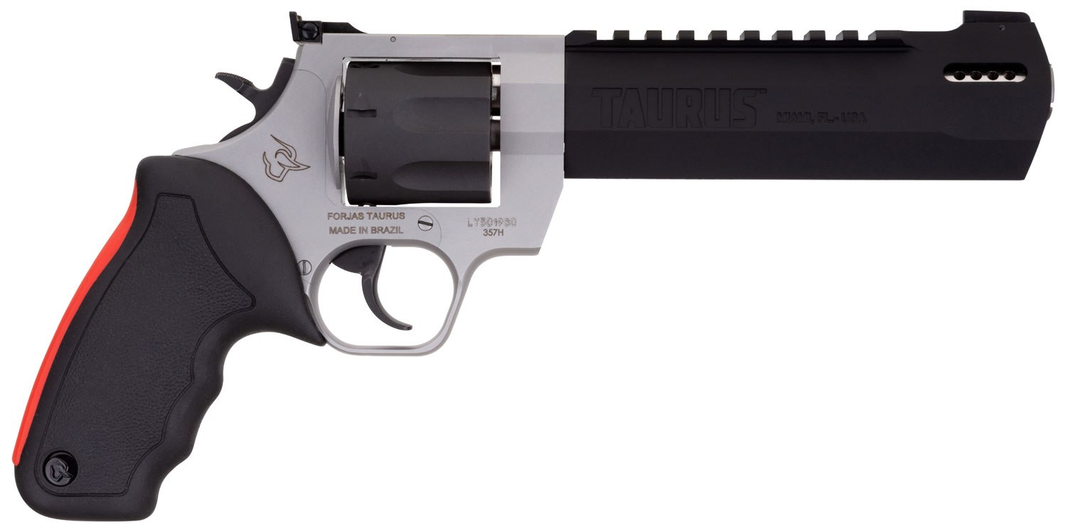Taurus 2454065RH Raging Hunter 454 Casull 5rd 6.75″ Matte Black Oxide Cylinder & Barrel Matte Stainless Steel Frame Black Rubber with Integrated Red Cushion Insert Grip